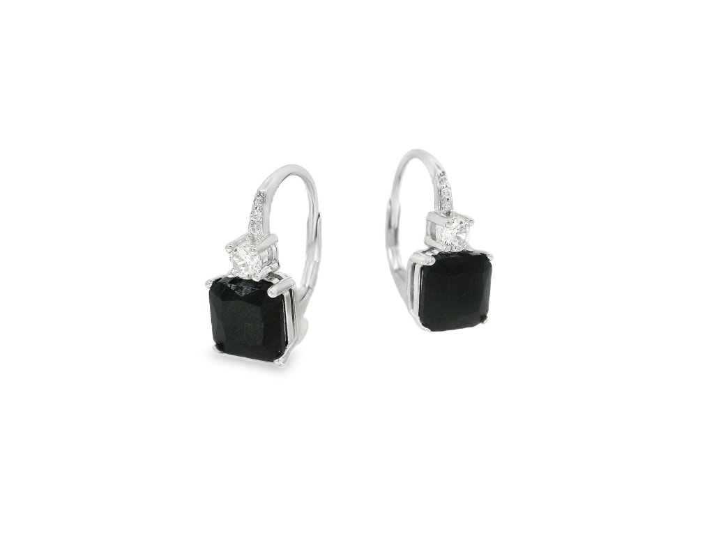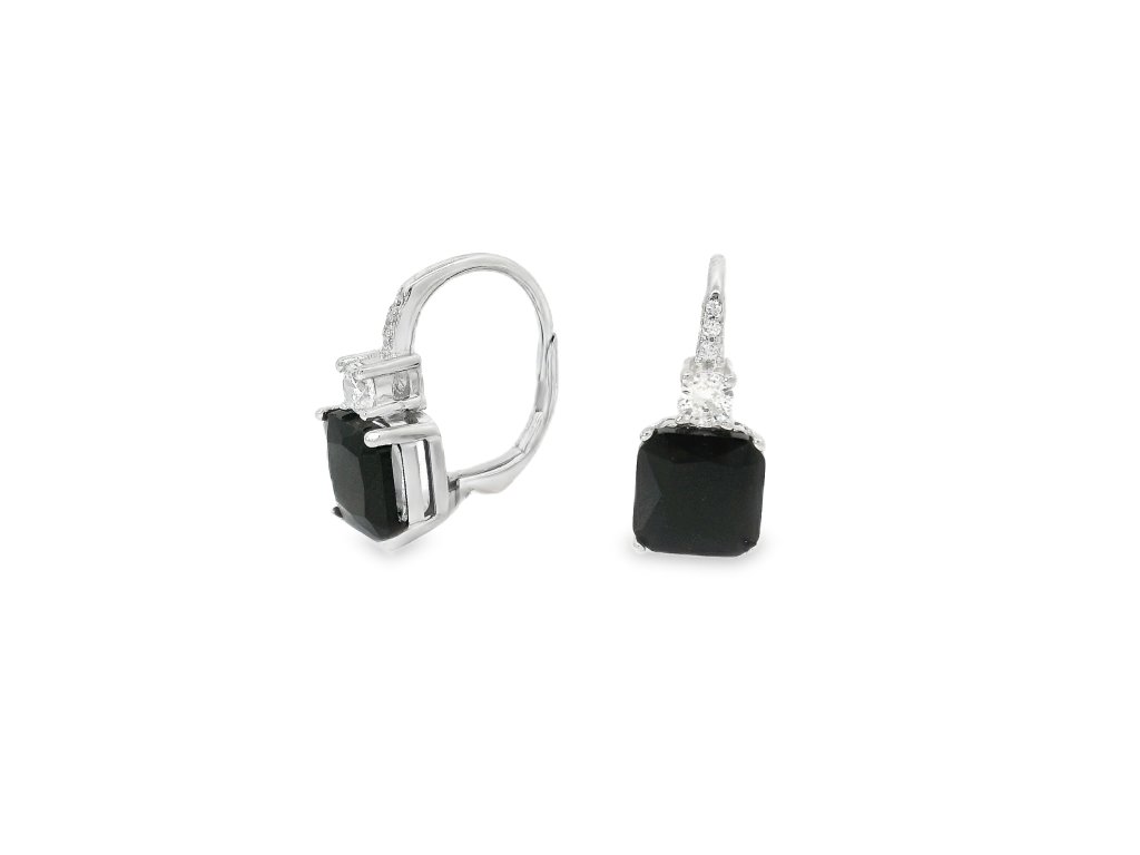 Tieto strieborné náušnice s čiernym štvorcovým zirkónom a čírymi detailmi sú stelesnením moderného štýlu s nádychom luxusu. Výrazný dizajn vynikne pri každej príležitosti – od večernej spoločnosti až po elegantný pracovný outfit. Lesklý povrch vďaka rhódiu a dokonalý výbrus kameňov zaručujú žiarivý vzhľad po dlhý čas. Klasický dámsky patent poskytuje pohodlné a spoľahlivé nosenie počas celého dňa. Ideálny šperk pre ženy, ktoré milujú kontrast, precíznosť a štýlovú výnimočnosť.