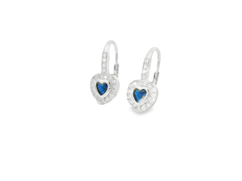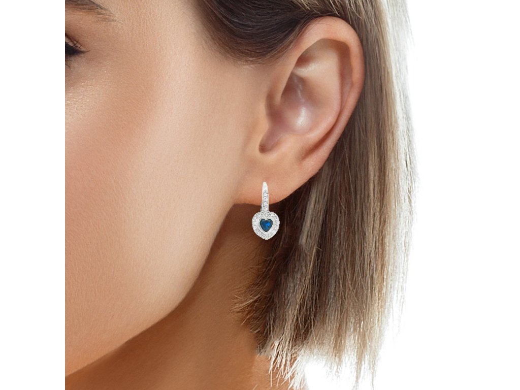 Strieborné náušnice s modrým zirkónom v tvare srdca