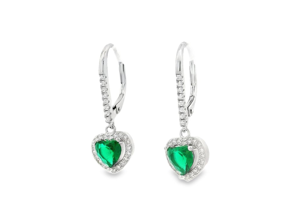 Strieborné visiace náušnice so zeleným srdcom