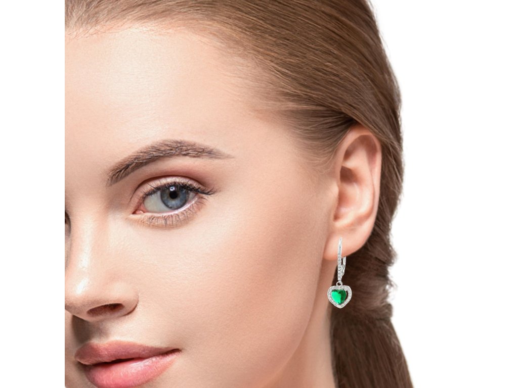 Zelené kubické zirkónie v tvare srdca dodávajú náušniciam nezameniteľnú romantickú atmosféru. Ich sýta farba evokuje drahé smaragdy, no zirkónie ponúkajú vysokú tvrdosť a trvácnosť za dostupnejšiu cenu. Okolo hlavného kameňa sa tiahne línia drobných čírych zirkónov, ktoré zdôrazňujú jeho lesk a tvar. Kamene sú brúsené s maximálnou precíznosťou pre brilantný odraz svetla.