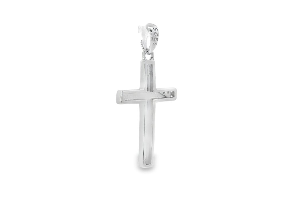 Elegantný krížik zo striebra 925/1000 spája duchovnú symboliku s moderným dizajnom a jemným leskom. V hornej časti je ozdobený čírymi zirkónmi, ktoré mu dodávajú decentný lesk a nádych slávnostnosti. Povrchová úprava rhódiom zaručuje, že si prívesok dlhodobo zachová svoj jas a chráni kov pred tmavnutím. Tento prívesok je ideálny na každodenné nosenie – diskrétny, no pritom výrazne symbolický. Nosí sa s ľahkosťou, no v sebe nesie veľkú vnútornú hodnotu a ticho hovorí za vás.