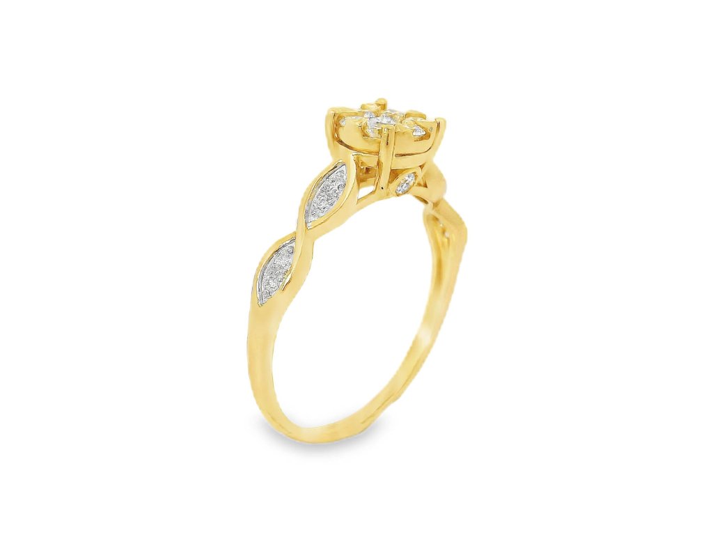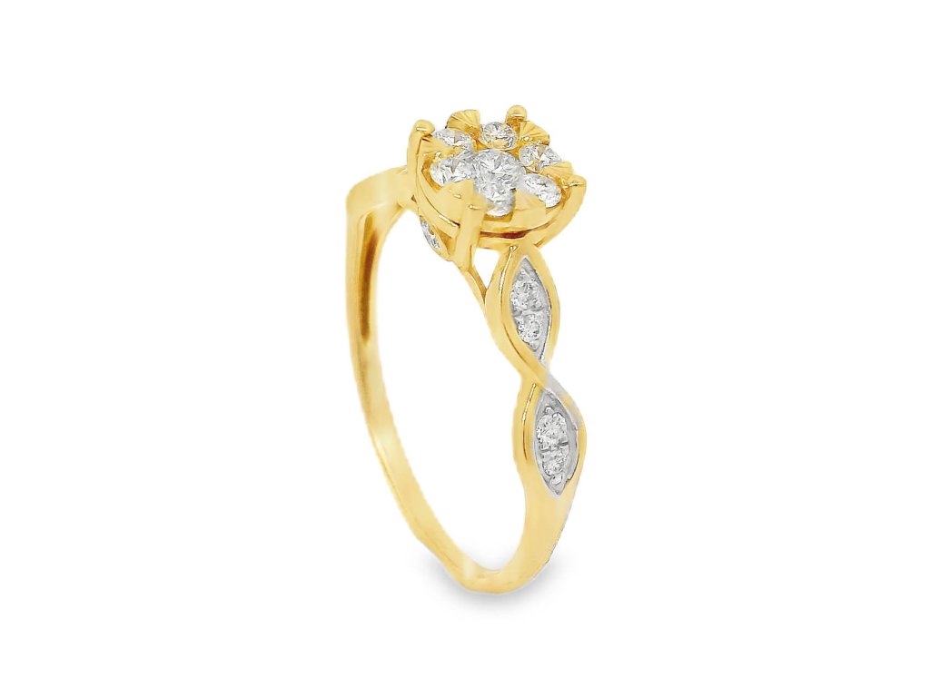 Prsteň je zhotovený zo 14-karátového žltého zlata (585/1000), ktoré je známe svojou hrejivou farbou a vysokou odolnosťou. Vysoký lesk povrchu je dosiahnutý precíznym leštením, čo umocňuje luxusný dojem. Zlatý základ krásne kontrastuje s belosťou briliantov, čím vzniká harmonická a veľmi elegantná kombinácia. Materiál je hypoalergénny a vhodný na každodenné nosenie.