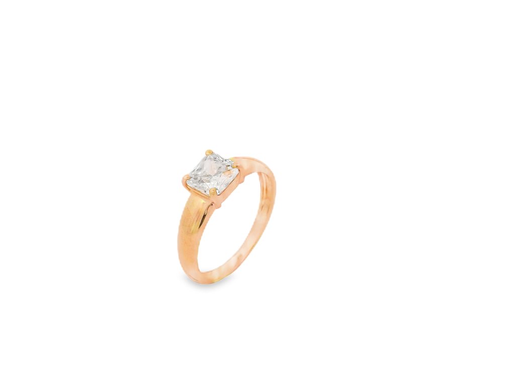 Jemná obruč prsteňa z ružového zlata dáva vyniknúť kameňu, ktorý sa stáva stredobodom celého šperku. Štyri krapne držia zirkón bezpečne, no zároveň mu umožňujú maximálne odrážať svetlo. Hranatý brus pôsobí moderne, zároveň však elegantne a rafinovane. Prsteň výborne sedí na ruke a je ideálnou voľbou pre ženy, ktoré hľadajú šperk s čistými líniami a veľkým významom.