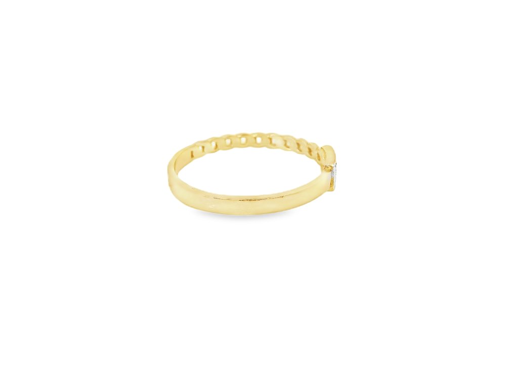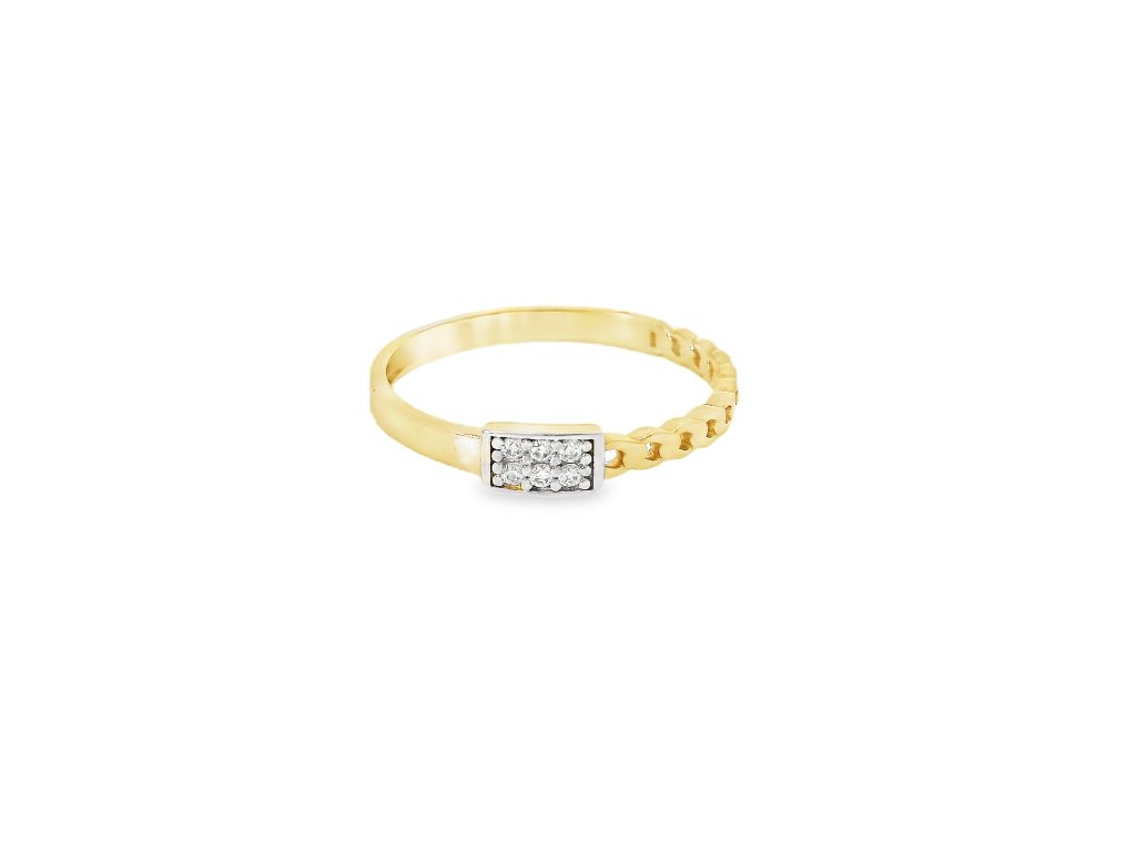 Zlatý dámsky prsteň zo žltého zlata s článkovaným vzorom a zirkónmi + servis a krabička, darček