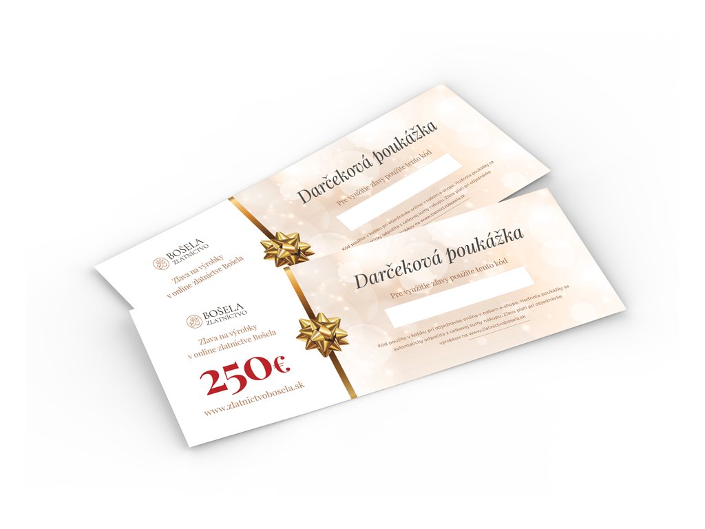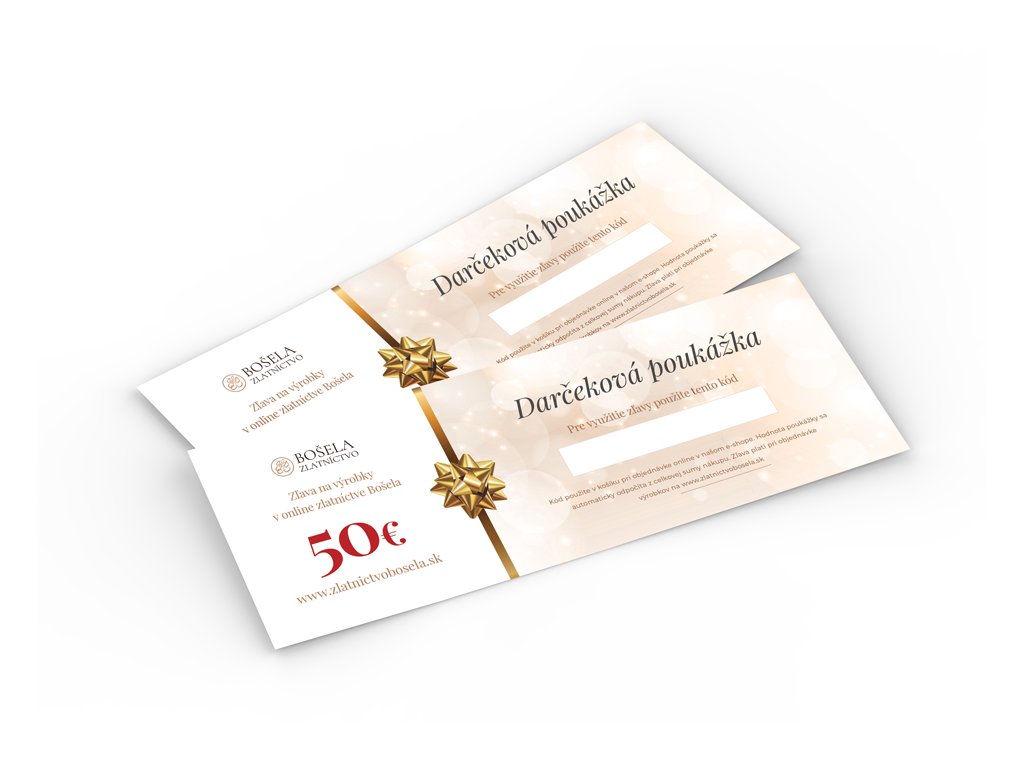 Darčeková poukážka je ideálnym riešením pre každého, kto chce potešiť, no zároveň nechať na obdarovaného, aby si vybral presne to, po čom túži. Či už ide o prsteň, náhrdelník, náramok alebo iný jedinečný kúsok – s našou poukážkou máte istotu, že dar bude vždy dokonalý.