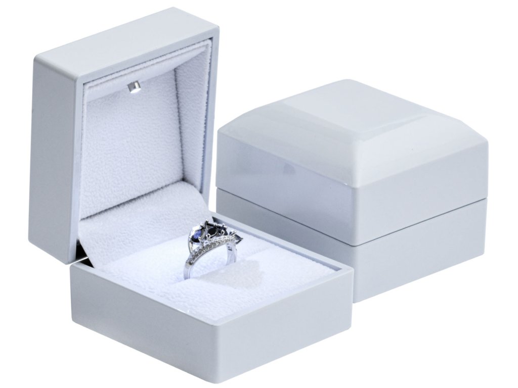 Biela LED krabička na prsteň – luxus v čistom dizajne