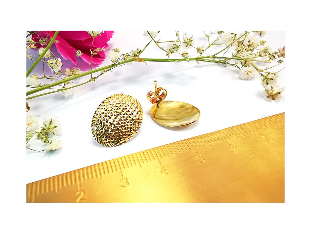 Náušnice sú vyrobené zo 14-karátového žltého zlata (585/1000), ktoré je mimoriadne odolné, no zároveň ľahké a komfortné na nosenie. Povrch je upravený jemným gravírovaním technikou Posalux, ktorá vytvára jedinečný diamantový lesk bez použitia kameňov. Táto remeselná technika dodáva šperku hlboký, žiarivý efekt a vysokú estetickú hodnotu. Zlato má teplý, prirodzený tón a vďaka kvalitnej úprave si zachová svoj vzhľad po dlhé roky.