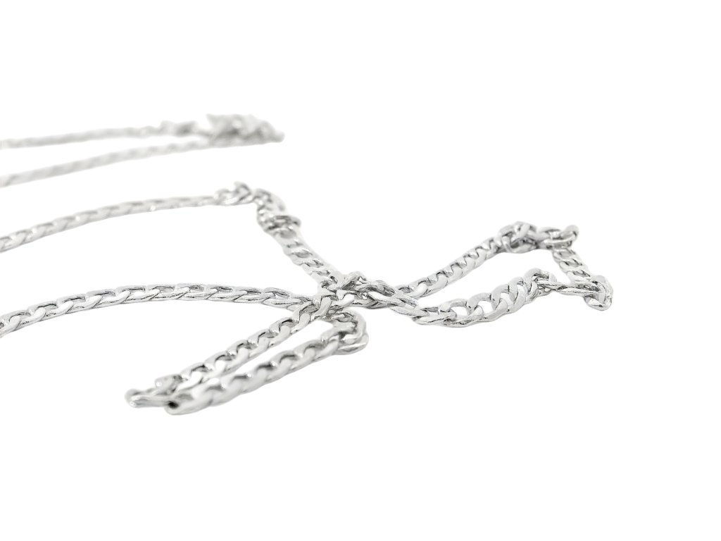 Retiazka je vyrobená z bieleho zlata s rýdzosťou 585/1000 (14 karátov), ktoré sa vyznačuje dlhou životnosťou, farebnou stálosťou a hypoalergénnosťou. Povrchová úprava do vysokého lesku zvýrazňuje elegantnú štruktúru očiek. Duté vnútro článkov umožňuje výrazný dizajn bez zbytočnej hmotnosti. Biele zlato pôsobí sofistikovane a dokonale ladí s rôznymi typmi pleti.
