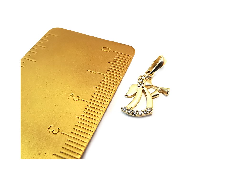 Zlatý anjel s trúbkou a zirkónmi + + krabička, darček
