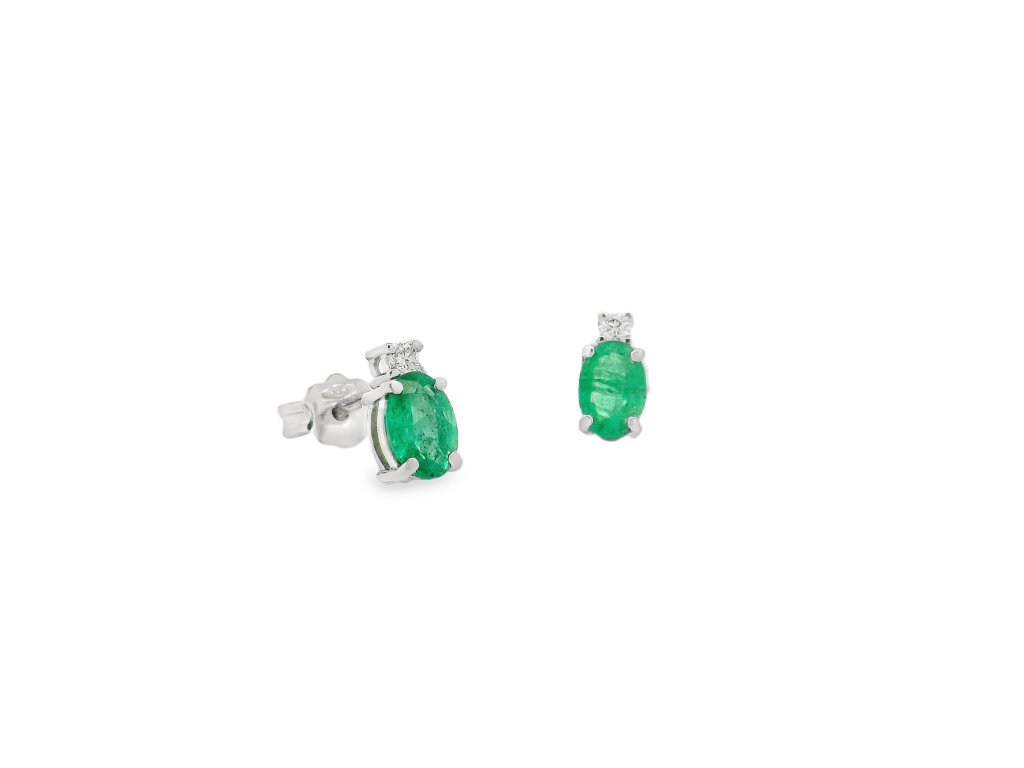 Každú náušnicu zdobí prírodný smaragd s typickou zelenou farbou v oválnom výbruse. Nad ním sa nachádza drobný briliant, ktorý dodáva šperku žiarivý akcent. Smaragd je kameňom harmónie, rastu a obnovy – a jeho výrazná farba okamžite upúta pozornosť. Briliant (brúsený diamant) je symbolom večnosti a luxusu, ktorý ešte viac umocňuje hodnotu celého šperku. Táto kombinácia drahokamov je nesmrteľná klasika.