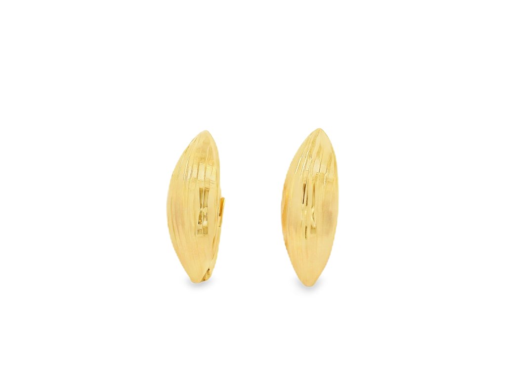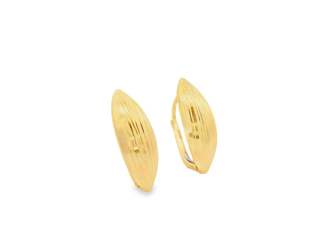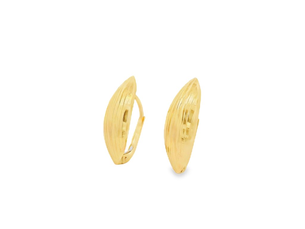 Tieto náušnice sú čisto zlaté – neobsahujú žiadne kamene. Ich krása spočíva v čistej línii, elegantnom tvare a detailnom gravírovaní. Minimalistický dizajn bez zdobenia je ideálny pre ženy, ktoré uprednostňujú čistú formu a decentnú eleganciu. Absencia kameňov zvyšuje univerzálnosť náušníc a ich odolnosť pri každodennom používaní. Takýto štýl je nadčasový a ľahko kombinovateľný s inými šperkami.