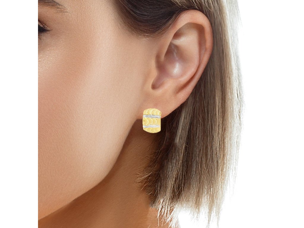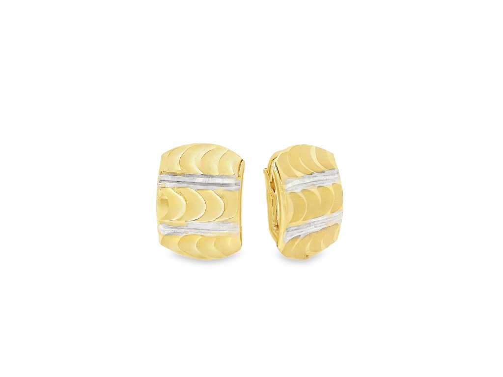Elegantné zlaté náušnice s dvojfarebným gravírovaným vzorom – lesk, ktorý neprehliadnete +servis + krabička
