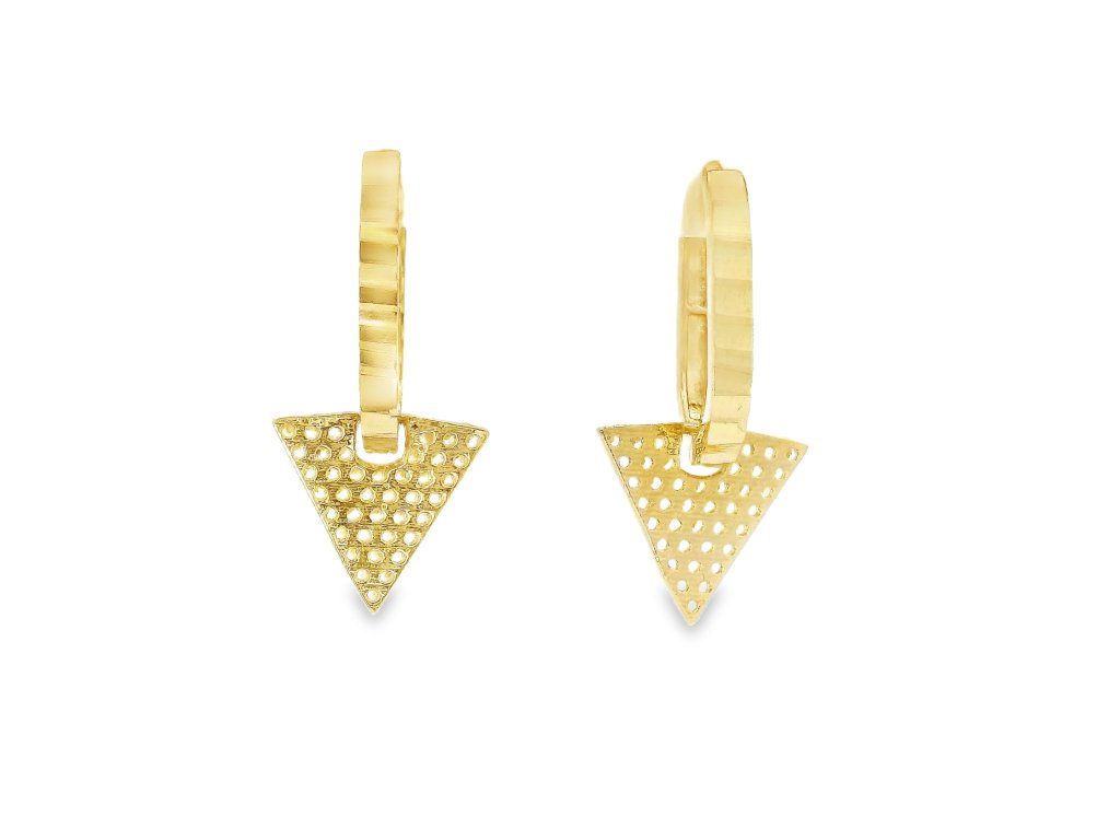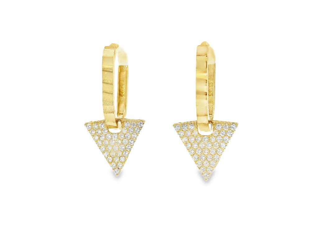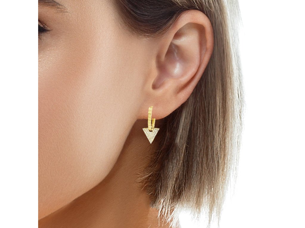 Zlaté dámske náušnice zo žltého zlata s trojuholníkovým príveskom a zirkónmi +servis + krabička