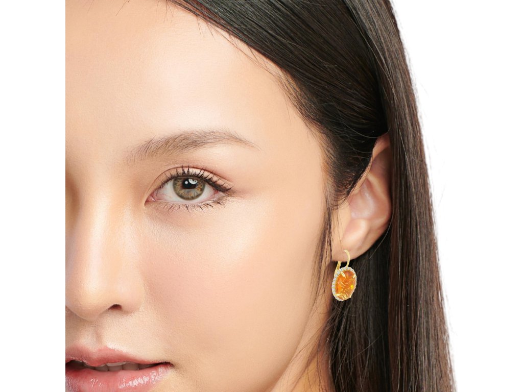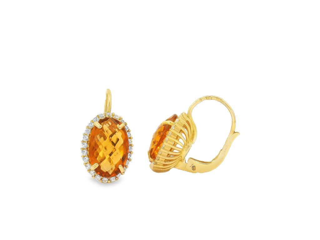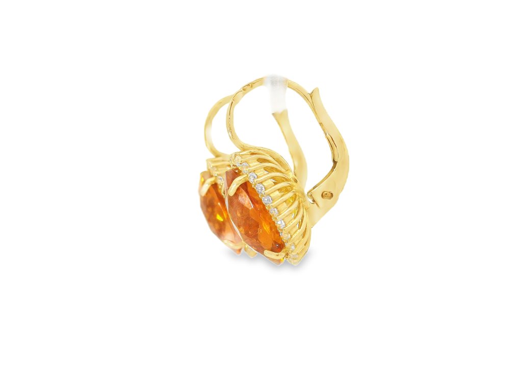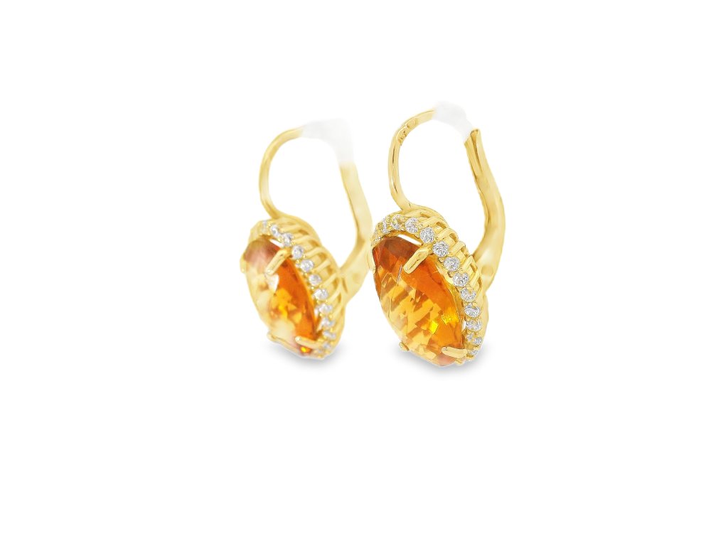 Zlaté náušnice s oválnym syntetickým citrínom a čírymi zirkónmi
